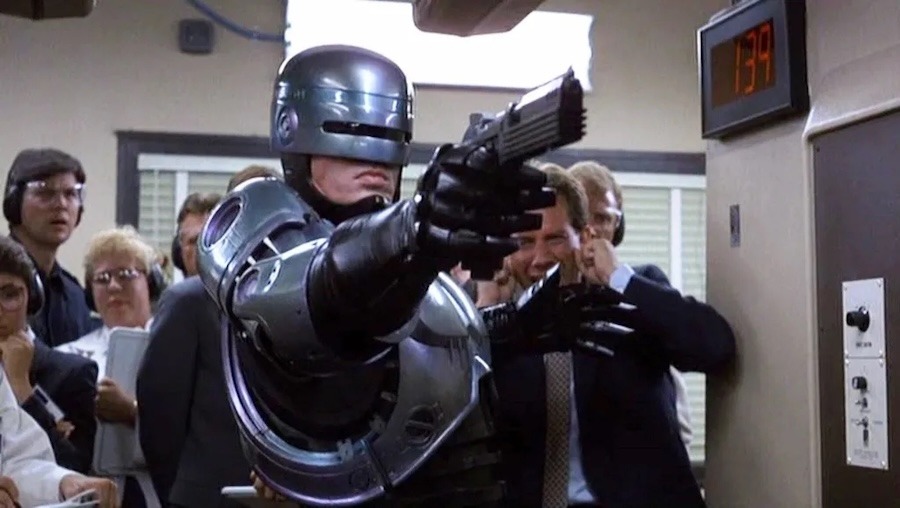As always in Verhoeven’s films, even in this one, the first he made in Hollywood, the violence is very brutal, almost cartoonish (especially in the director’s cut). There’s a terrific, shocking sequence where the OCP research department proudly presents another law enforcement robot at a board meeting. The robot goes out of control and almost obliterates a guy, pumping rounds after rounds of bullets into him. When the massacre is over and there’s barely anything left of the poor victim, someone suggests calling for paramedics. It’s such a Verhoeven-esque sequence; gruesome and raw, but funny.
